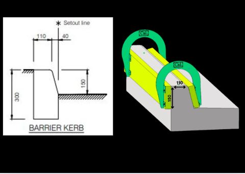 The Cal Bracket is designed to meet the specifications to form this type of barrier kerb.